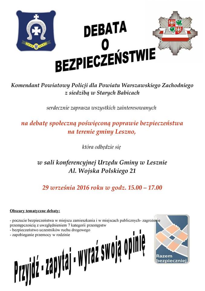 Przedstawiciele naszego stowarzyszenie będą obecni 29 września na debacie społecznej poświęconej poprawie bezpieczeństwa w gminie Leszno.